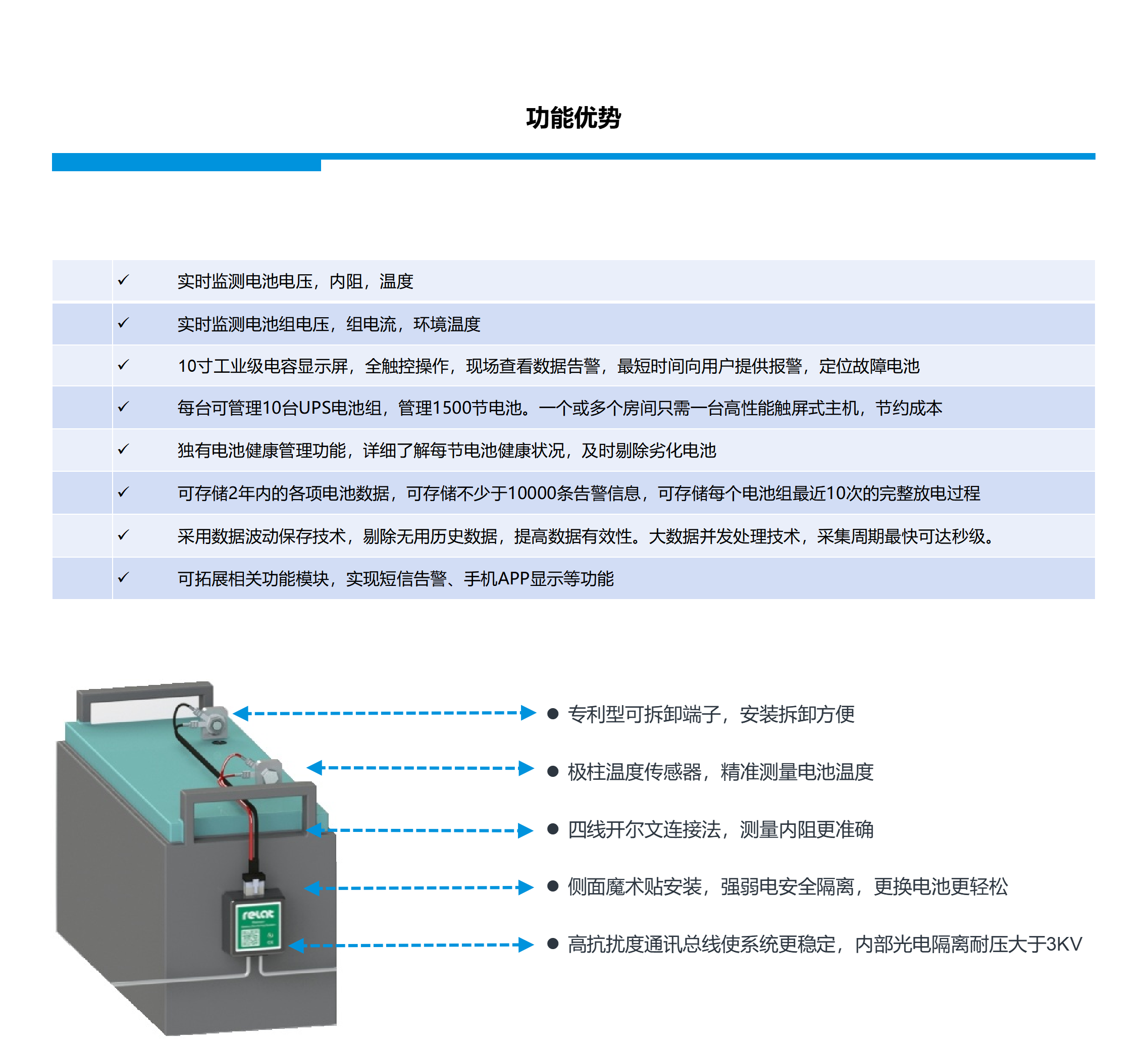 功能:10寸可觸控式蓄電池監(jiān)測管理主機,64G固態(tài)硬盤存儲,可管理多臺設(shè)備,蓄電池健康管理功能,圖形化顯示電池數(shù)據(jù)與狀態(tài)。
