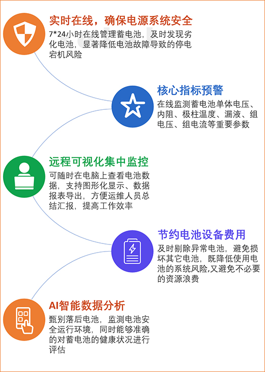 第一時(shí)間了解蓄電池的實(shí)際性能數(shù)據(jù),提升了運(yùn)維管理智能化水平,無需專人值守。