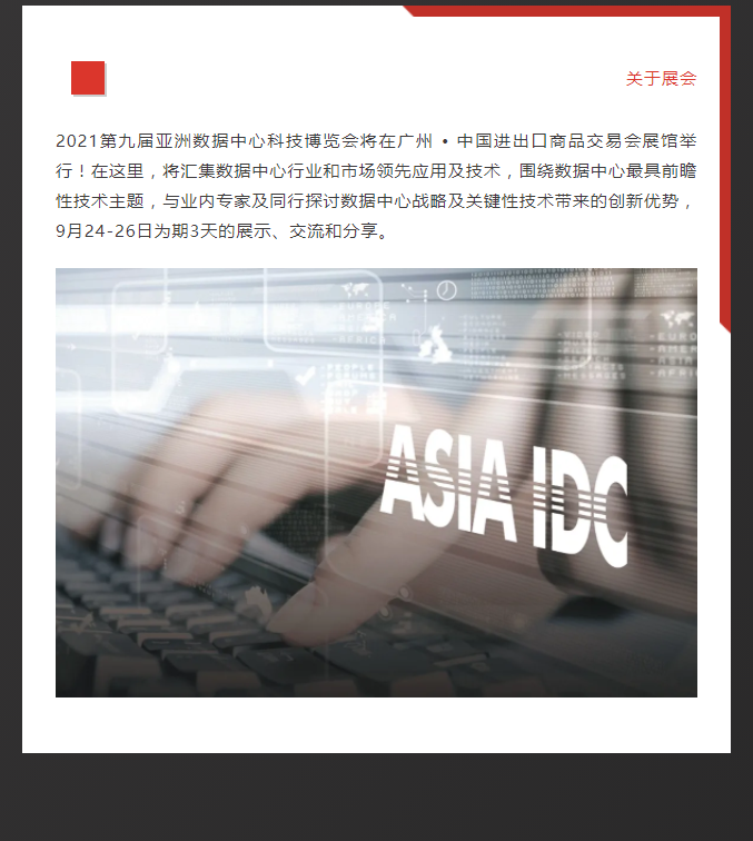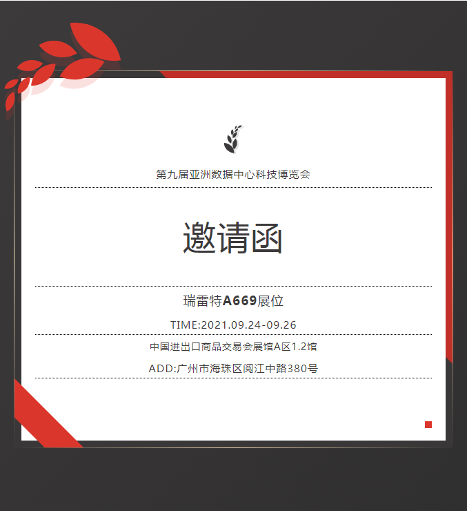 瑞雷特丨誠邀您蒞臨9月24-26日第九屆亞洲數(shù)據(jù)中心科技博覽會!