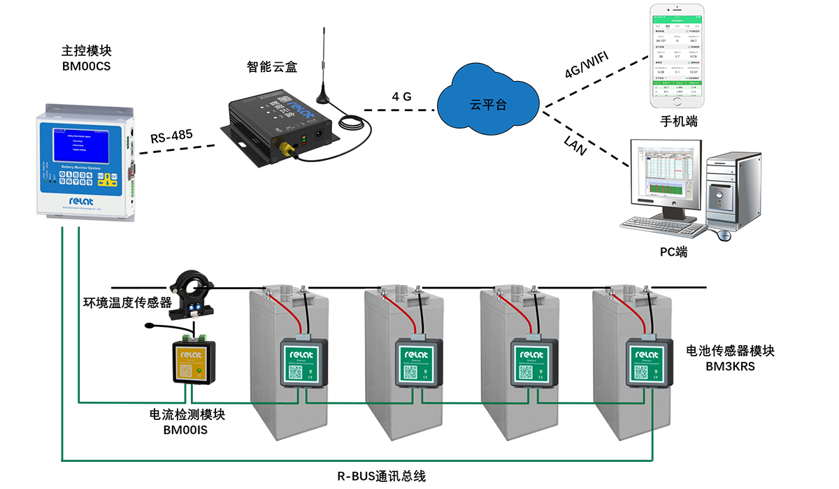 蓄電池監(jiān)控系統(tǒng)對蓄電池的各項參數(shù)進行連續(xù)性監(jiān)測,并將數(shù)據(jù)實時上傳到云端,手機APP查看設(shè)備參數(shù)。